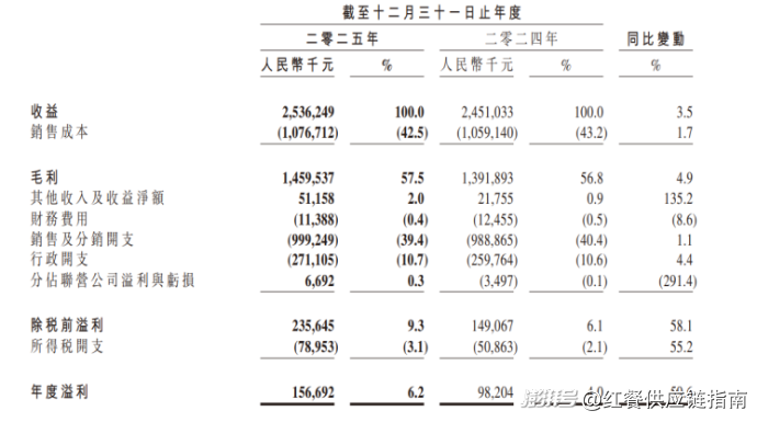 周黑鸭(01458.HK)同样受惠于鸭价红利。年报显示,2025年,周黑鸭的净利同比增长59.60%至1.57亿元。这一年里,公司的整体销量增长14.60%至29977吨,但由于产品原材料成本下降叠加供应链效率优化,公司整体销售成本仅微增1.7% 。