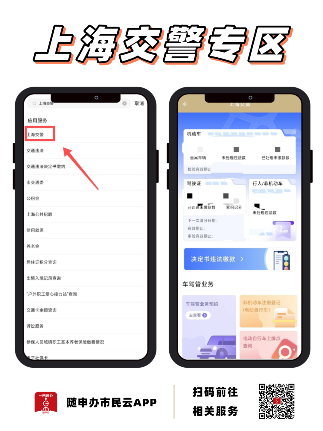 车主朋友们快收藏!“随申办市民云”APP“上海交警”专区,可以使用违法缴款、车驾管业务预约、一键挪车等相关功能,以及查询车辆限行、拖车、驾驶人照片等信息。扫描下方二维码即可进入。