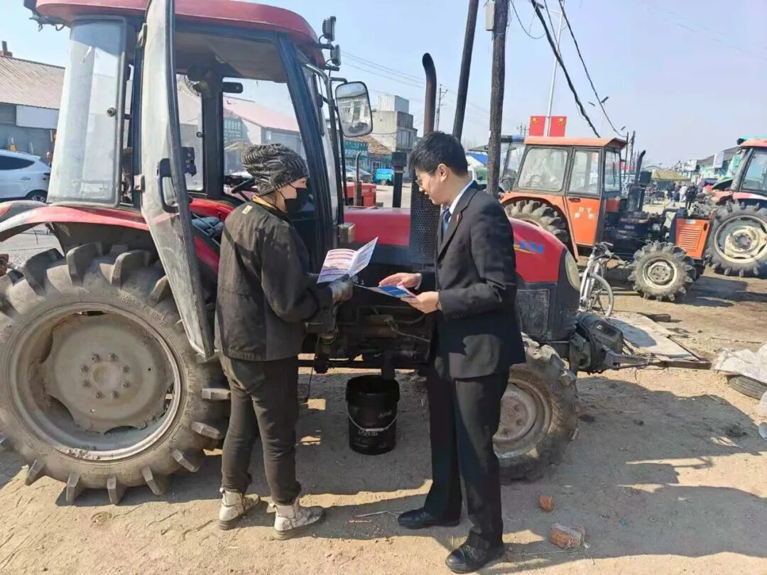 活动中,法庭干警聚焦春耕生产安全重点,针对农机作业、农资采购、劳务用工等关键环节,向农户开展精准普法与安全提醒。在农机交易市场,干警结合农机作业安全事故典型案例,向农机手详细讲解安全驾驶注意事项并提醒农户定期检修农机设备、做好安全防护,杜绝无证驾驶、违规操作等行为。在农机维修站点,法庭干警还向维修人员与农户讲解安全生产相关法律知识,督促做好维修作业安全防护,避免机械伤害等事故发生。