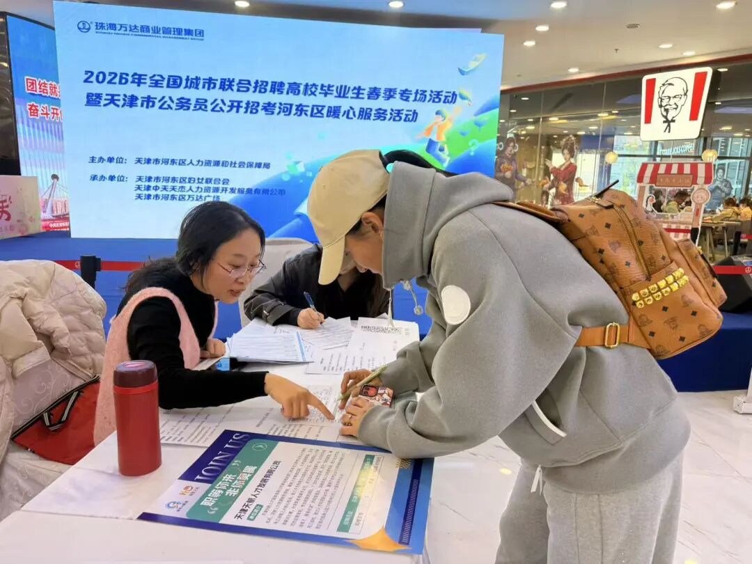 日前,由区人社局主办、区妇联承办的2026年全国城市联合招聘高校毕业生春季专场活动暨天津市公务员公开招考河东区暖心服务活动,在河东万达广场顺利举办。活动精准聚焦高校毕业生求职需求与企业用工需求,汇聚优质就业资源,搭建高效对接平台,助力青年人才平稳步入职场。