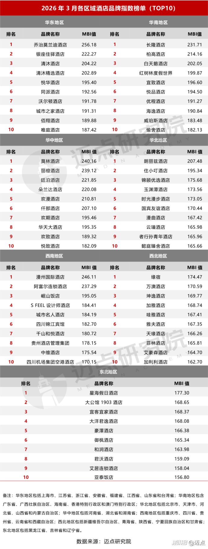 3、区域酒店格局呈现延续上升趋势,整体而言,酒店区域品牌指数持续上升。开工季商务差旅复苏、多地密集推出景区免票优惠,叠加节后错峰出游带来的客流补充,推动区域市场多点开花。区域间的差异化复苏,折射出国内旅游市场正逐步走向更均衡的发展格局,为行业平稳运行提供有力支撑。