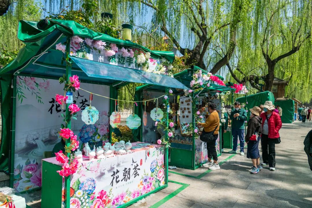 花朝荟·赏花市集热闹开市,既有春日限定美食,也有特色好物。泉水河畔,泡一壶泉水茶,清冽茶香混着花香,褪去一身疲惫;再尝一口软糯的春日小吃,烟火气与诗意撞个满怀。