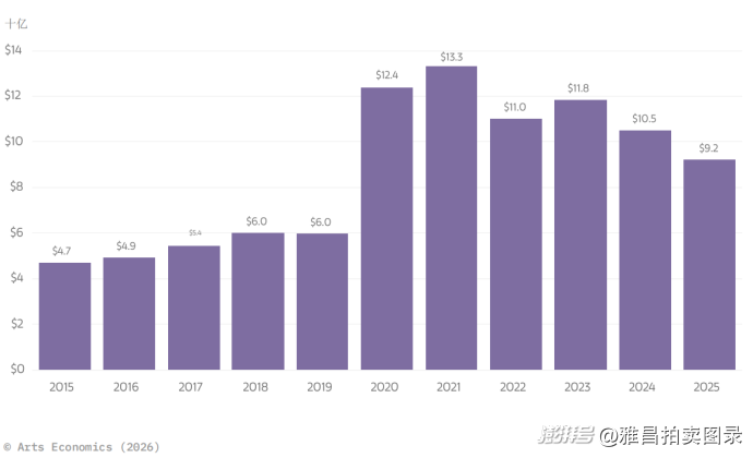2025年,全球艺术品市场迎来了久违的暖意。根据最新发布的《2026年全球艺术市场报告》(巴塞尔艺术展及瑞银集团联合呈献),拍卖行业销售额增长6%,呈现温和回升态势。然而,数字背后的行业生态却远非一片坦途。在复苏的表象之下,一场无声的生存危机正在拍卖行中蔓延——运营成本的持续攀升,正在吞噬市场回暖带来的红利。