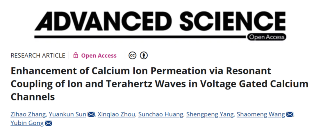 原标题:《【科技前沿】Adv Sci | 电子科大宫玉彬团队提出离子靶向新机制:太赫兹波直接共振钙通道内离子,实现通透增强》