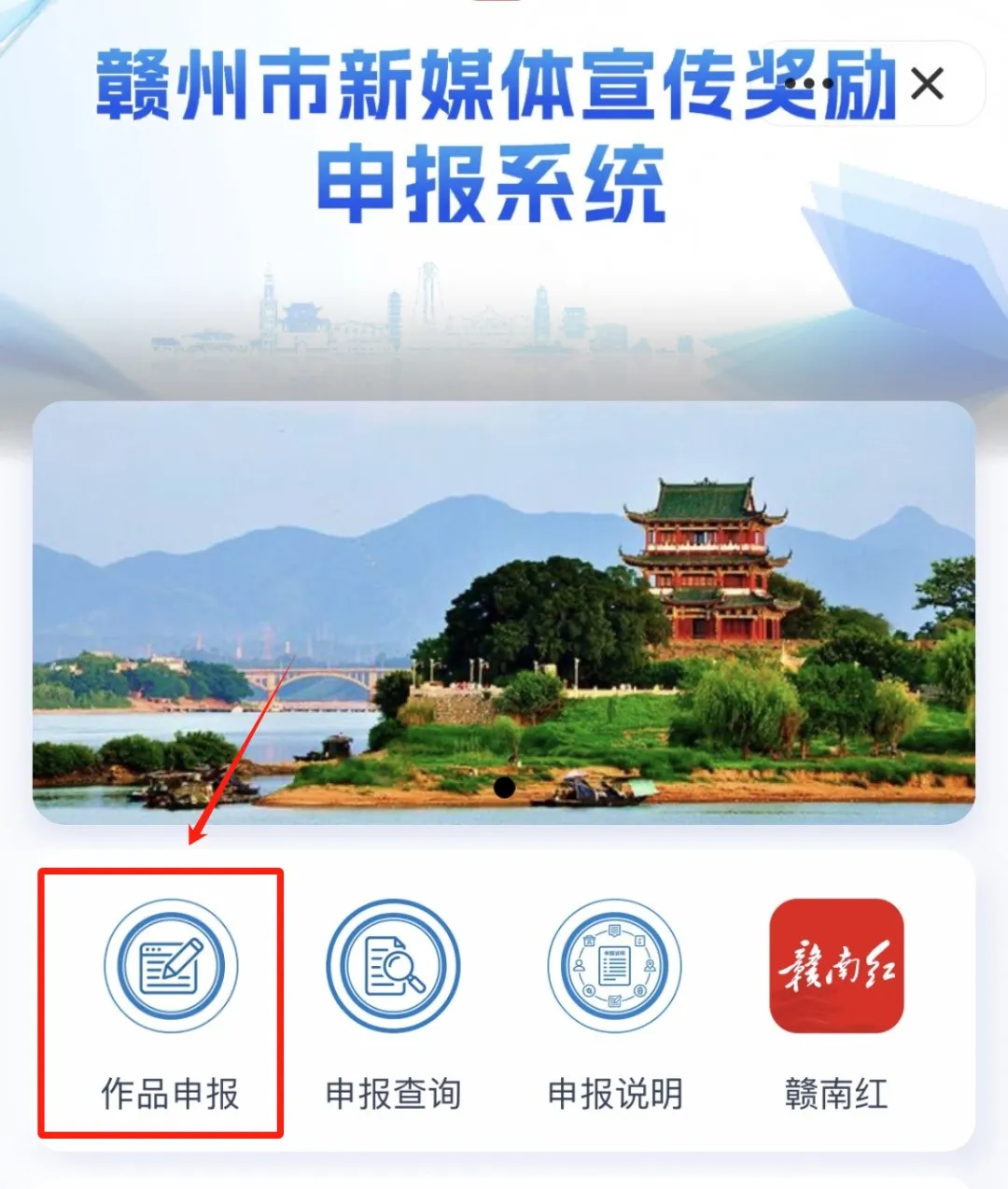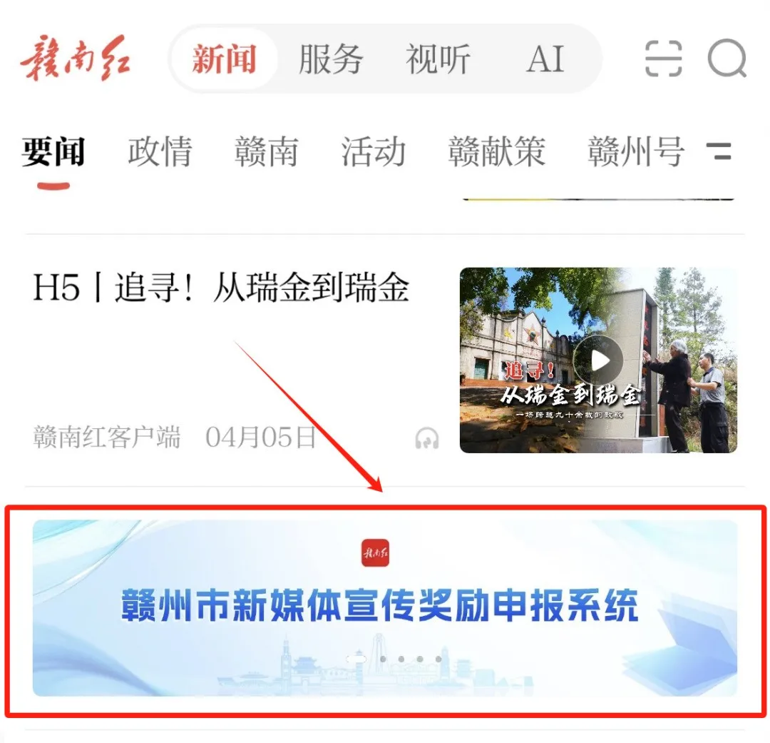 或者在首页要闻频道,找到“赣州市新媒体宣传奖励申报系统”点击进入。