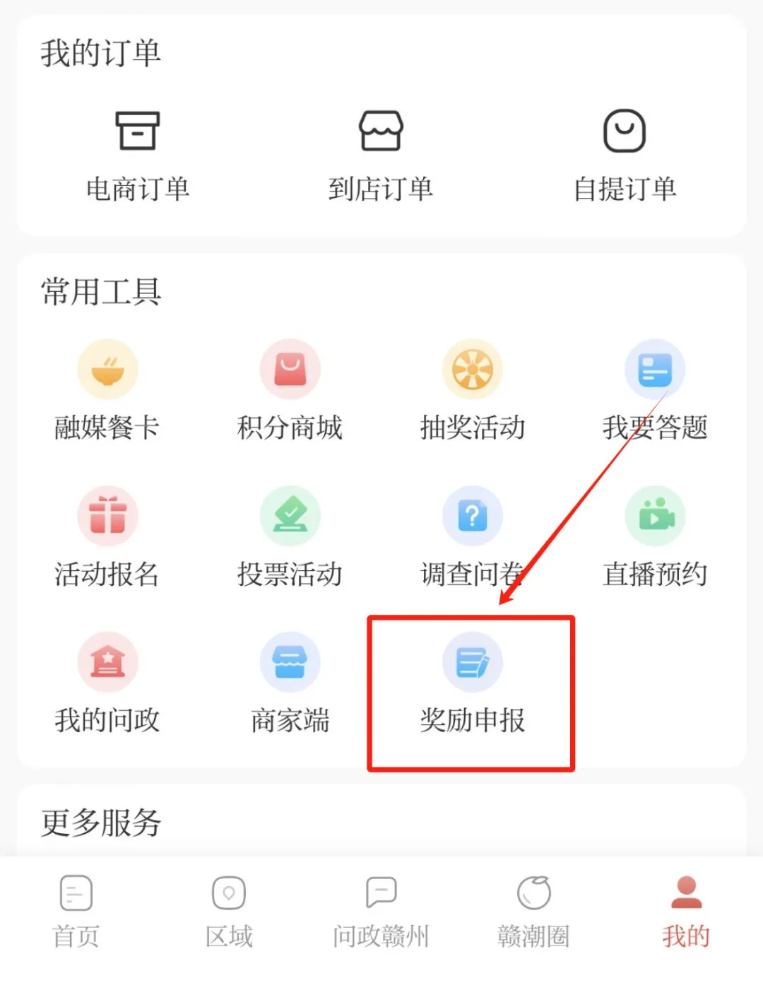 在“我的”界面常用工具中找到“奖励申报”,点击进行申报。