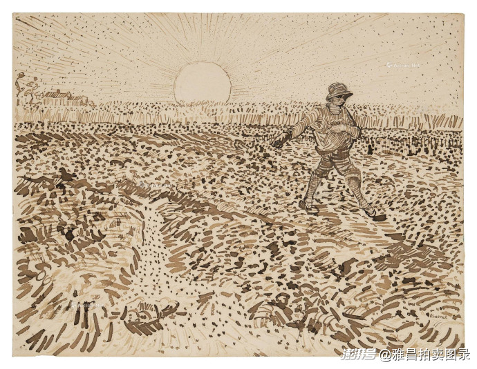 梵高的素描作品拍卖纪录,是2025年11月纽约苏富比“李奥纳德・A・兰黛珍藏晚拍”中《播种者》以1115.5万美元(约合人民币7740万元)成交。那是梵高寄给朋友兼同事埃米尔·伯纳德的十五幅系列素描之一——当时伯纳德正在布列塔尼工作。在两人都极具创新精神和创作力的时期,他们通过书信和素描的交流,分享彼此的抱负与成就。