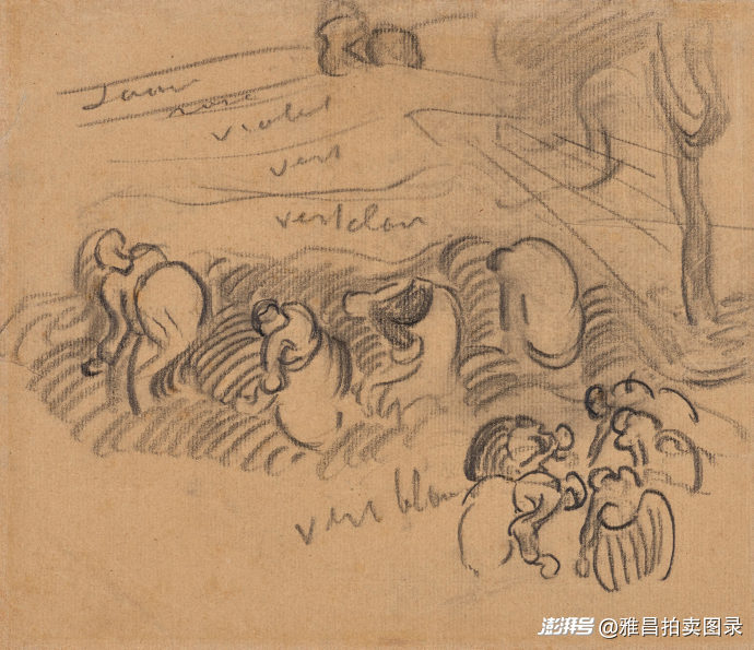 4月17日即将在佳士得巴黎“印象派及现代艺术”专场上拍的双面素描《摘豌豆的人(正面);风景习作(背面)》,正是诞生于这段炽烈而悲怆的时光。这幅创作于1890年6月的双面素描,不仅是梵高奥维尔时期创作的珍贵见证,更是一把解开他创作过程的钥匙。