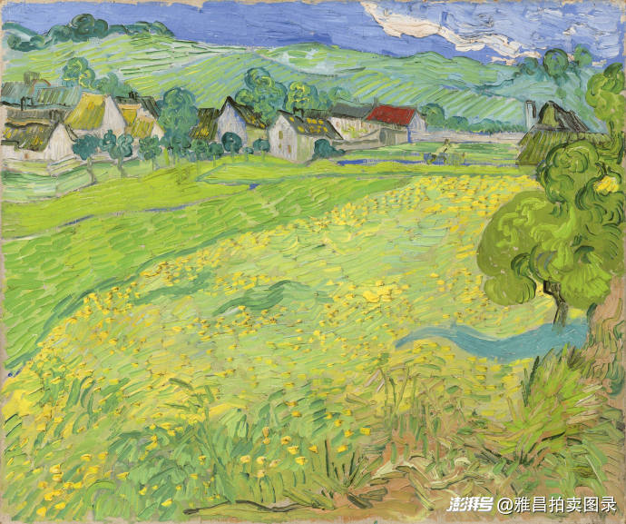 梵高的油画作品《Les Vessenots in Auvers》与这幅风景素描在表面上有些相似之处,这幅画显然并非依据即将上拍的这幅素描所作,但两者可能描绘的是同一片风景。那朵标注为“紫色”的云,那片以“蓝绿色”勾勒的麦田如未完成的乐章,让后世窥见艺术家脑海中永不停息的创造漩涡。