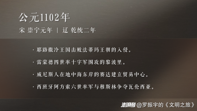 你好,这里是《文明之旅》。欢迎你穿越到公元1102年,大宋崇宁元年,大辽乾统二年。