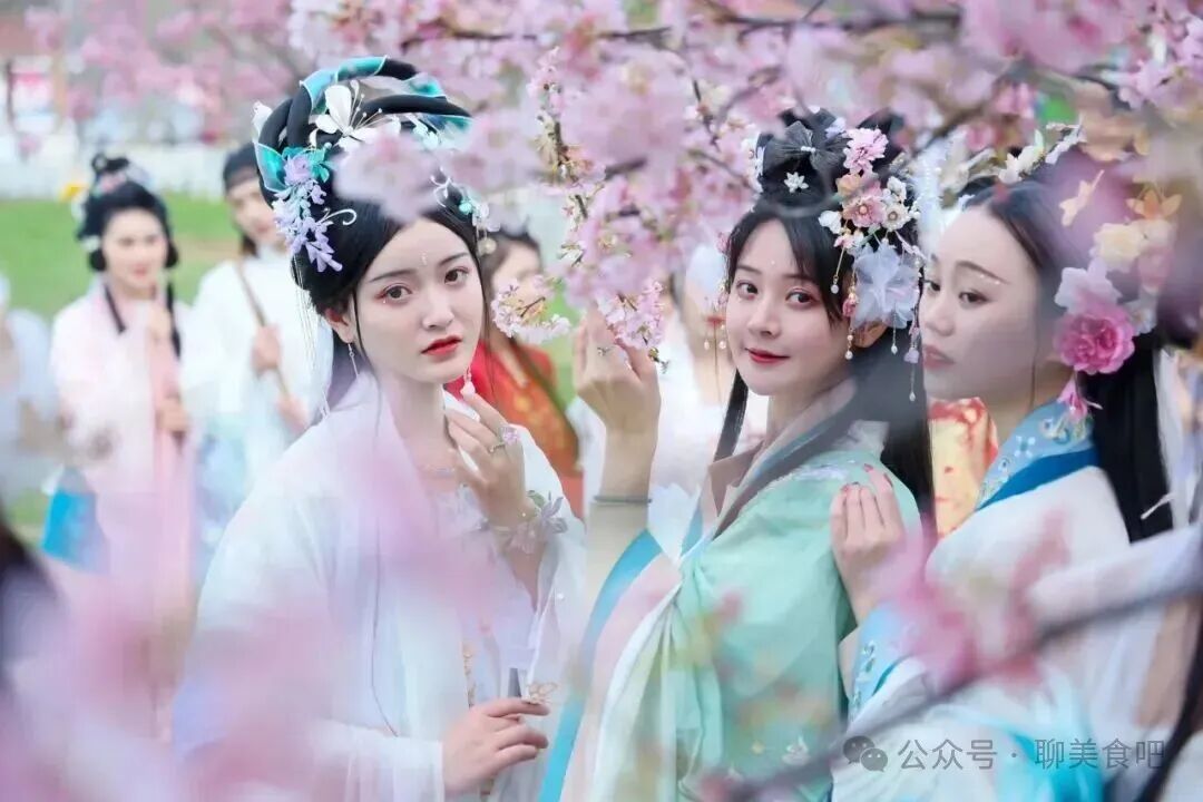 身着汉服穿行其间