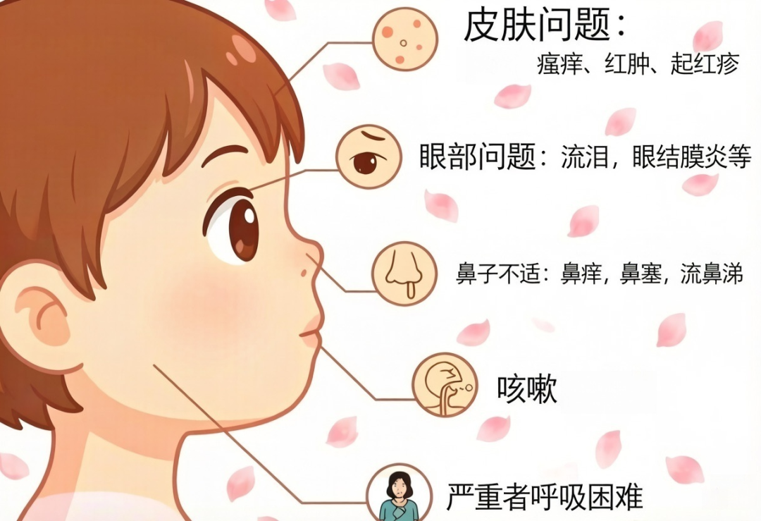 当花粉进入我们的鼻腔或呼吸道时,身体的免疫系统可能会误把它们当作“入侵者”,释放出组胺等化学物质,引起皮肤不适、流鼻涕、眼睛痒、流眼泪等症状。