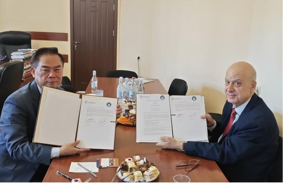 峰会结束后,陈肖纯一行于4月9日至10日前往亚美尼亚首都埃里温,与埃里温布罗索夫国立大学校长DavitGyurjinyan举行会谈。双方围绕师生互换、学术交流、学分互认、合作研究及联合培养等领域深入交流,达成多项合作共识,并共同签署校际战略合作协议,标志着郑州西亚斯学院与亚美尼亚高校正式建立长期合作关系。