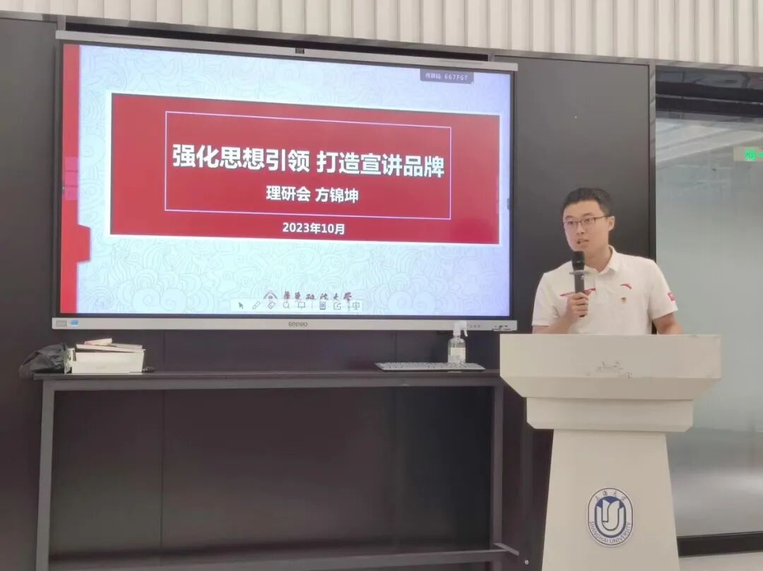 大一下学期,方锦坤修读了王建新老师的《习近平新时代中国特色社会主义思想概论》课程,课堂上老师引人入胜的讲解让他对马克思主义理论这门学科产生了浓厚的兴趣。课堂之外,他与老师始终保持交流,并在老师的鼓励与指导下开启了理论宣讲的实践之旅。