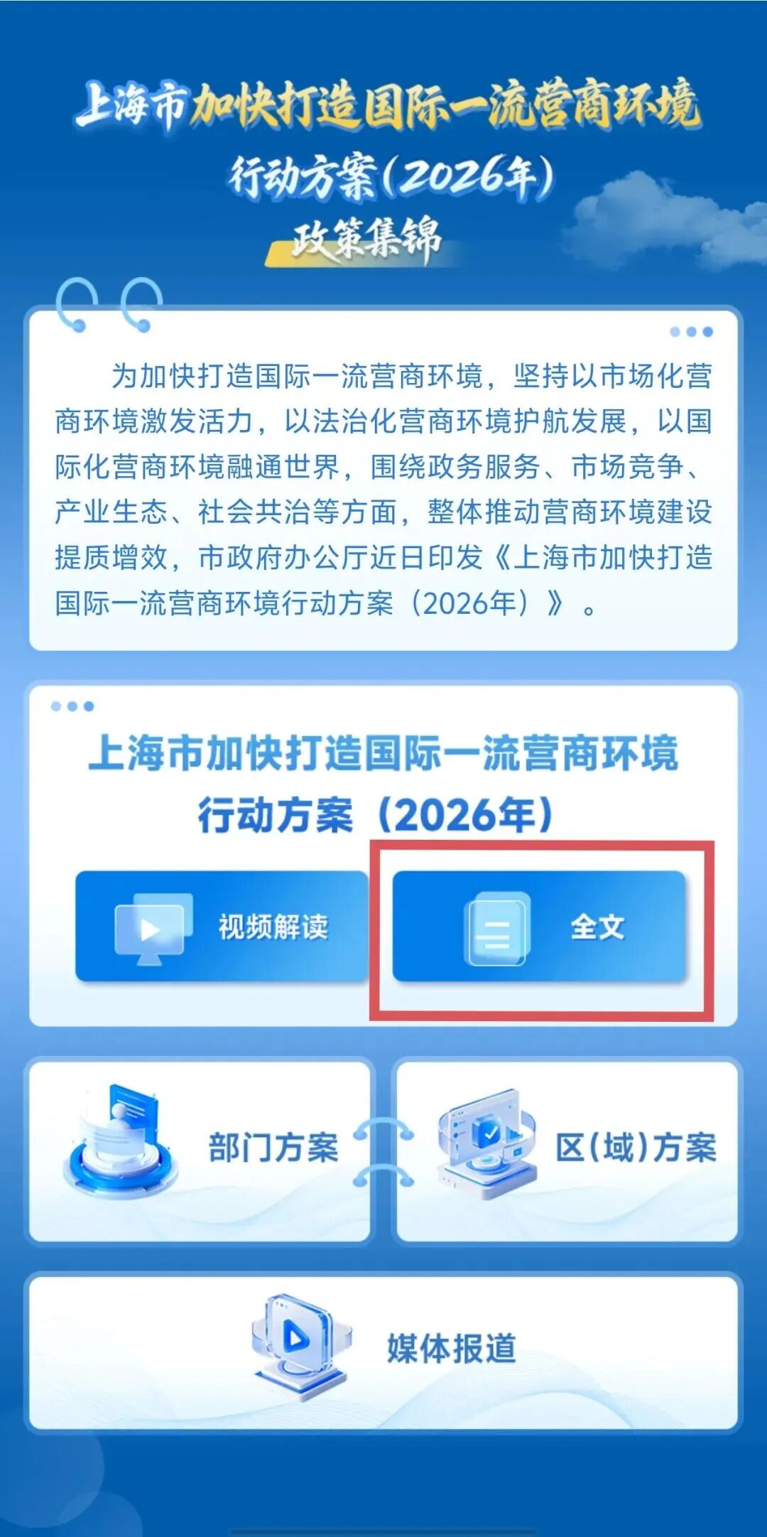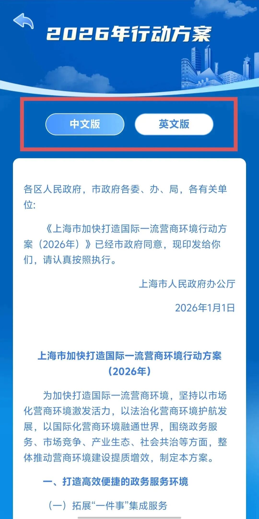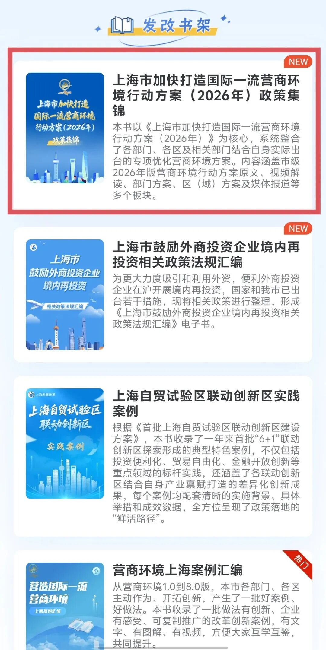 《上海市加快打造国际一流营商环境行动方案(2026年)》政策集锦电子书正式上线,点击查阅→