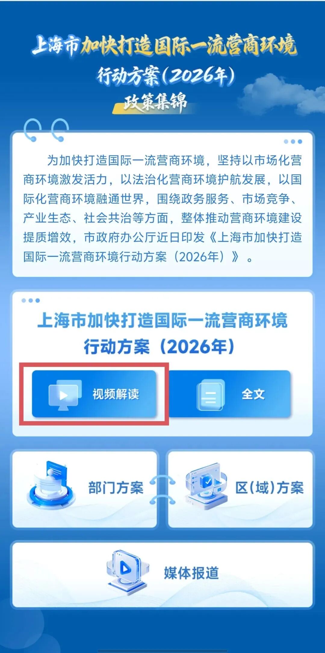 这本电子书包括市级2026年版营商环境行动方案原文、视频解读、部门方案、区(域)方案及媒体报道等多个板块,快来了解一下吧→
