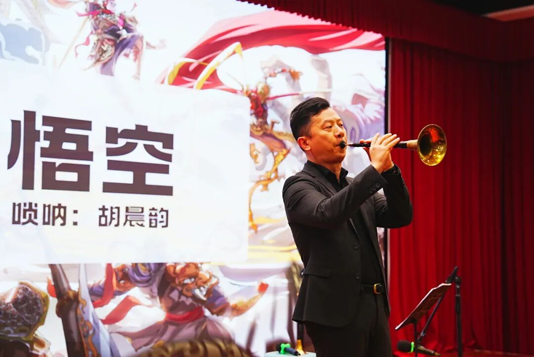 音乐会下半场,胡晨韵老师带来唢呐独奏《悟空》。高亢激昂的唢呐,将传统民族乐器与现代审美巧妙融合,以其极具穿透力的音色,将每一个音符送入观众耳中,直听得人热血沸腾。一曲结束,观众席爆发阵阵喝彩。
