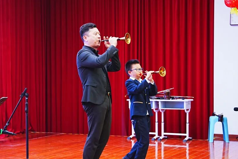 随后,胡晨韵老师携儿子,年仅8岁的胡天宝登台,父子同台吹响唢呐曲《哪吒》。两代人的气息在唢呐中交汇,将哪吒的倔强与少年气演绎得鲜活生动,引得掌声雷动。