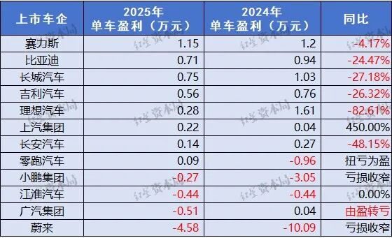 12家乘用车企2025年谁最赚钱?净利润总额低于宁德时代,4家车企仍亏损,蔚来卖一辆车要亏4.58万元