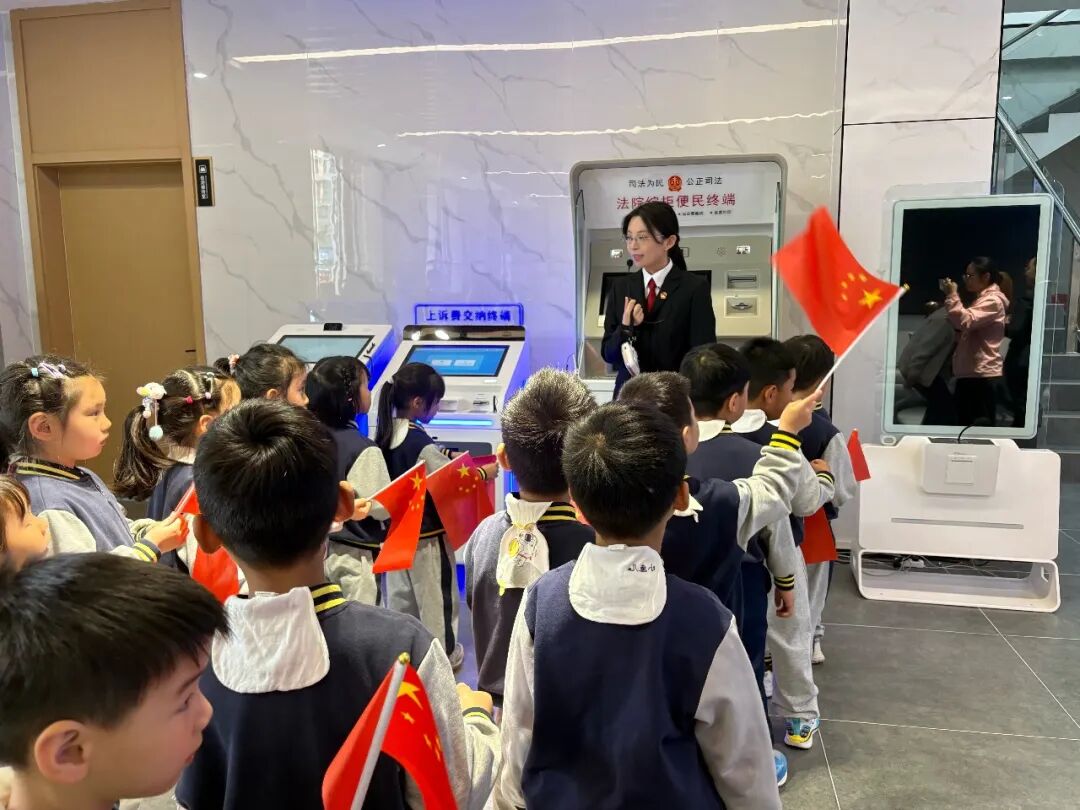 法院干警化身“法治向导”,用小朋友们听得懂的俏皮比喻,温柔地俯身解答小朋友们的各种疑问,也把诉讼服务中心的功能讲得生动又明白。