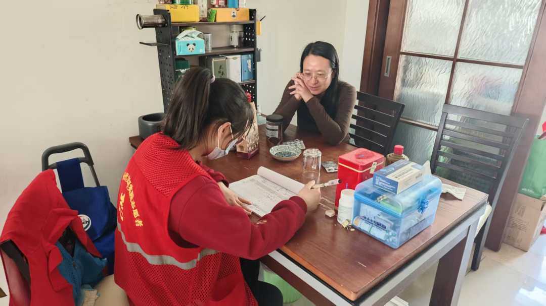 随后,工作人员来到农科家园李桂珍家中。今年61岁的李桂珍,是金凤区环卫局退休人员,微薄的退休金是家庭主要收入来源。2022年10月的一场车祸,让她自身身体饱受病痛折磨,可家里还有85岁高龄的公公需要照料,丈夫身患小脑萎缩、行走不便,日常起居也全靠她一人打理,生活的重担重重压在她的肩上。工作人员看着忙碌操劳的李桂珍,主动上前嘘寒问暖,耐心倾听她的生活难处,详细讲解老年人护理补贴、残疾人帮扶等惠民政策,耐心告知申请方式,宽慰她放宽心,有困难社区定会全力帮忙。李桂珍紧紧握住工作人员的手,哽咽说道:“这么多年,多亏了社区一直想着我、帮着我,你们的关心让我觉得不是一个人在扛,真的太感谢了!”