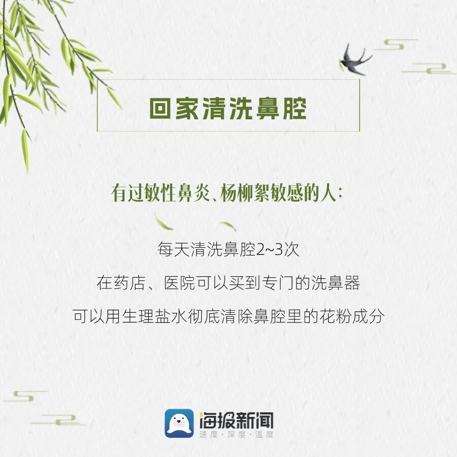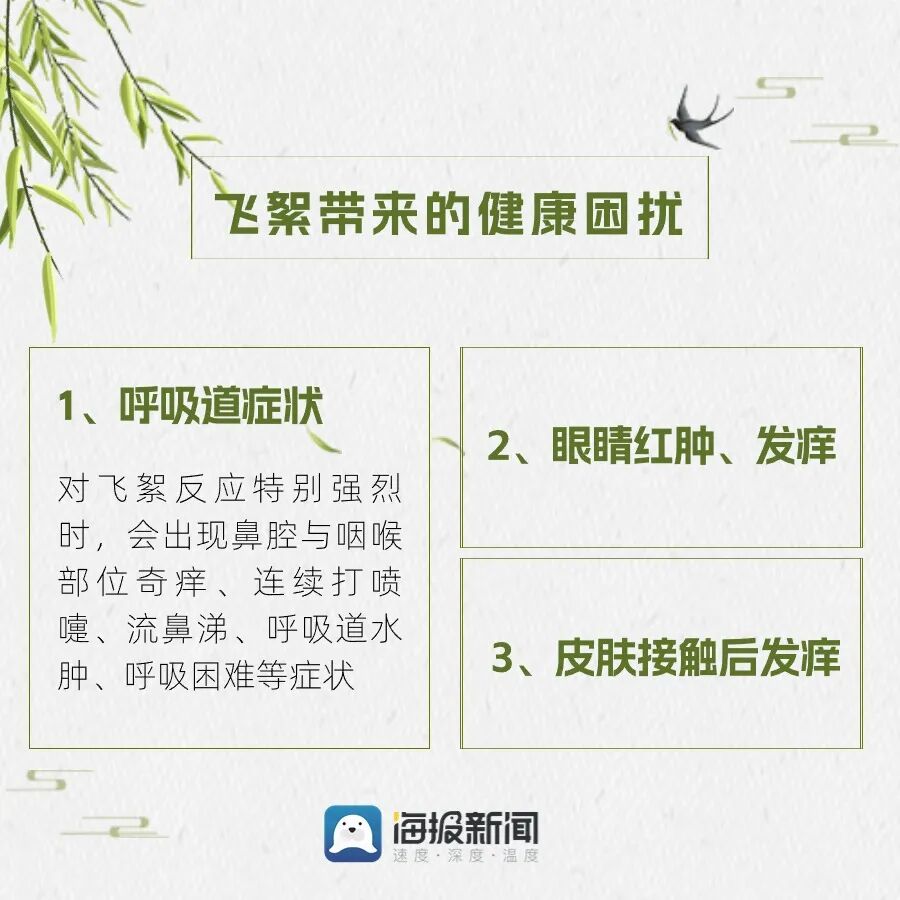 清:回家后及时洗脸、清洗鼻腔、更换外衣;若飞絮入眼或接触皮肤,用清水冲洗,不要揉搓或抓挠。