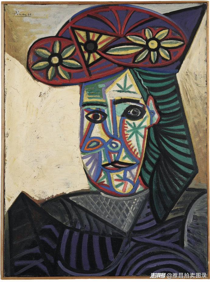毕加索于1943年战争时期创作的重要作品《戴花帽女子半身像》以3,201万欧元(约合2.64亿元人民币)成交于巴黎德鲁奥秋拍,此画自1944年被私人珍藏后,长达80余年未曾公开展出。