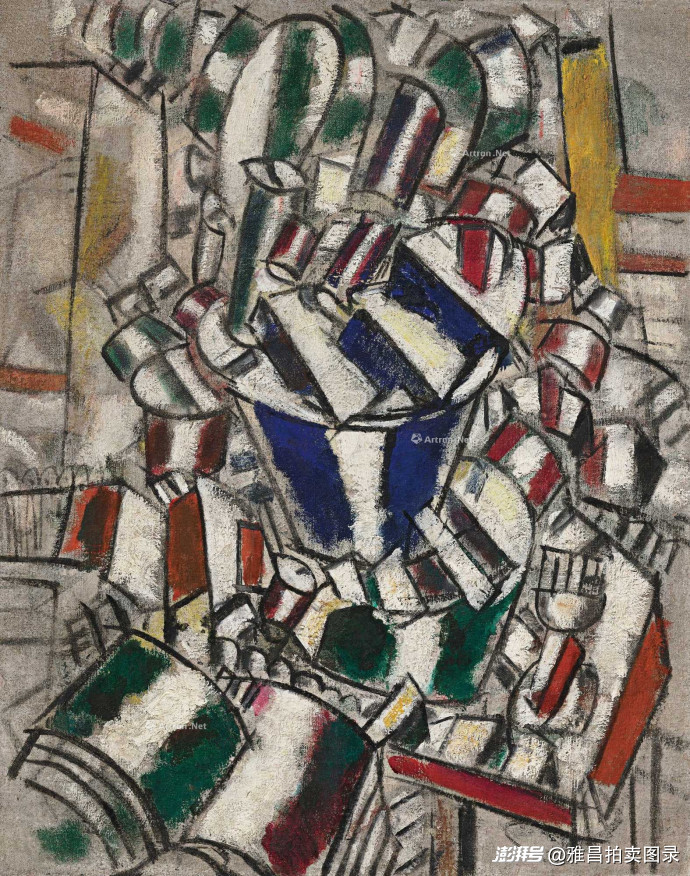 创作于1914年的《构图(静物)》是费尔南・莱热“形状对比”系列中六幅核心代表作之一。1913年,莱热与画商卡恩维勒签约,自此与毕加索、布拉克共同立于立体主义运动的前沿。本作不仅是莱热艺术理论的成熟实践,亦成为战前极具颠覆意义的视觉经典。这件力作在佳士得纽约二十世纪艺术晚拍中以1,961万美元(约合1.39亿元人民币)成交。