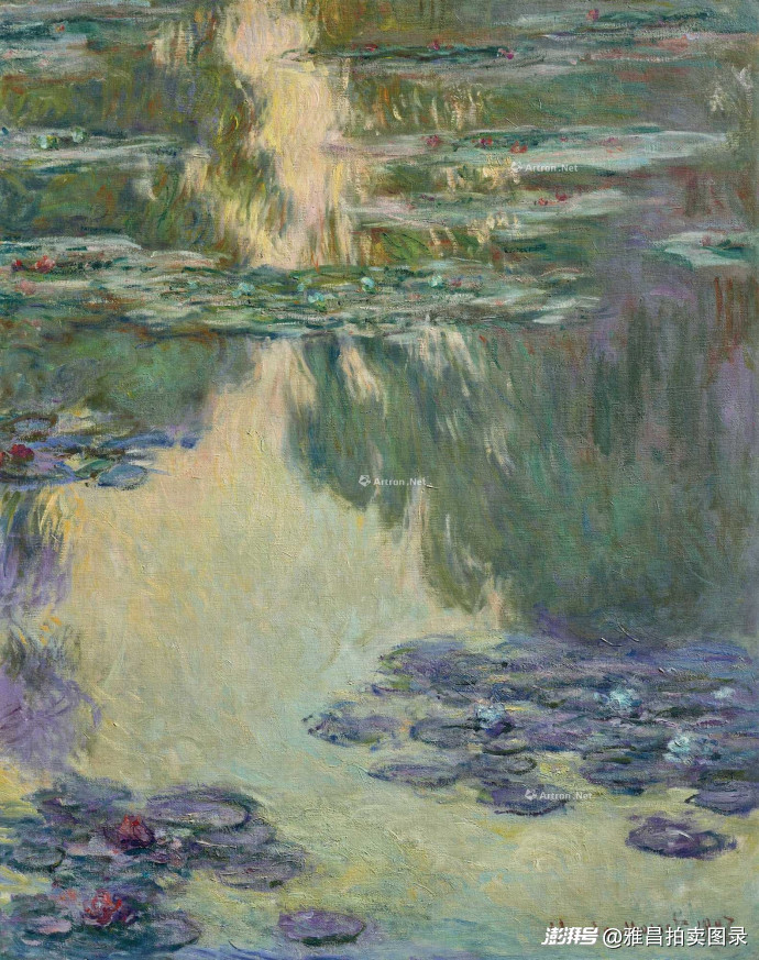 佳士得纽约二十世纪艺术晚间拍卖中川村纪念DIC美术馆藏莫奈《睡莲》以4548.5万美元(约合3.19亿元人民币)成交。本件拍品出自莫奈1907年创作的一系列共15幅画作。1883年,莫奈在吉维尼定居,搬进了塞纳河畔的一栋农屋和庭院,在庭院里修建了一个种满睡莲的池塘。1907年是莫奈创作精力十分旺盛的时期,整个春夏两季,他开始探索他钟爱的睡莲主题的构图变化,采用罕见的竖幅构图和近景特写,捕捉睡莲池中光影变幻的戏剧性效果,并在1909年于巴黎Galerie Durand-Ruel et Cie.展出包含本作的该系列大部分作品,这是睡莲系列画作首次在同一展览中同时展出。