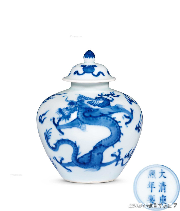 清康熙 青花云龙纹宝珠盖罐