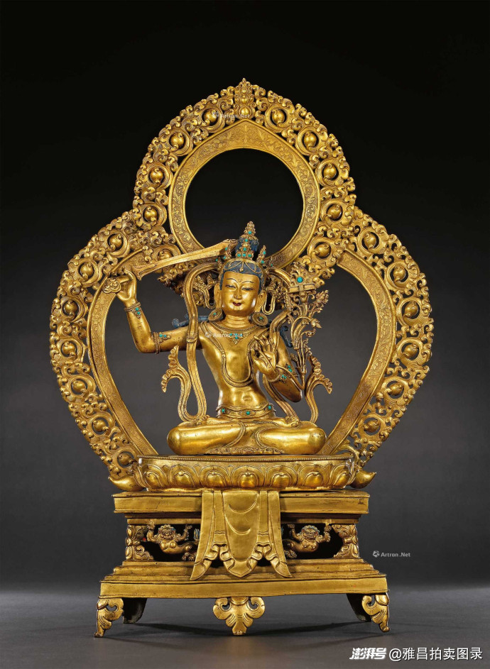 十七世纪 铜鎏金嵌松石文殊菩萨