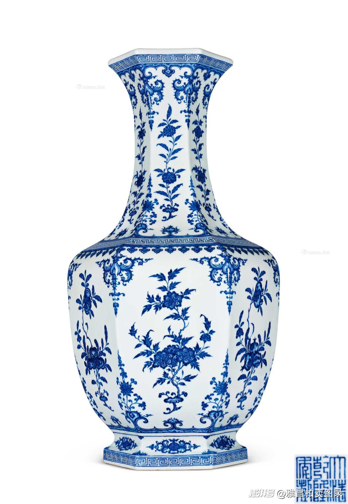 专场中,清嘉庆浮雕洋彩描金庐山图笔筒,工艺繁复、纹饰精美,是嘉庆官窑中的精品之作。清乾隆青花折枝花果三多纹如意六方大瓶、清道光洋彩花卉榴开万年纹双螭耳瓶一对、清康熙青花釉里红花卉纹苹果尊等拍品,或器型硕大、或纹饰吉祥、或工艺稀有,且均有清晰的收藏与拍卖纪录。