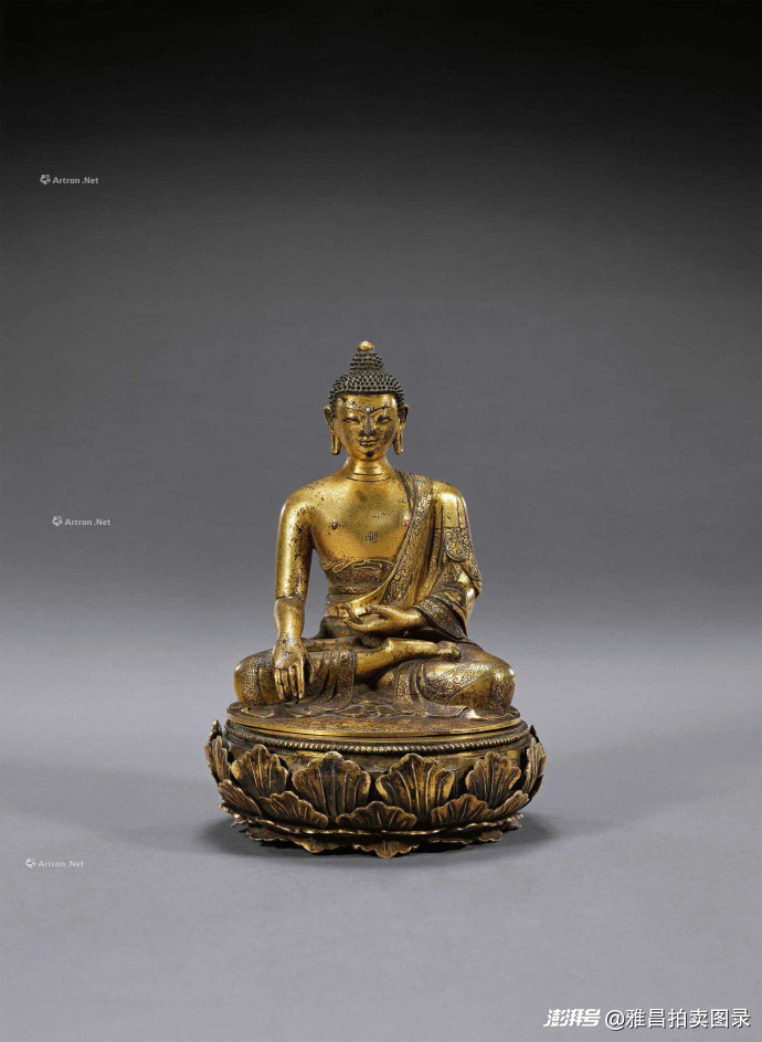 清康熙 铜鎏金嵌珍珠释迦牟尼
