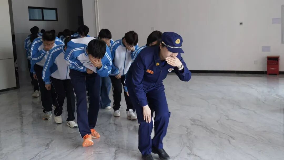 学生们还通过模拟真实火灾场景进行沉浸式消防安全体验,在消防工作人员和教师的有序引导下,学生们分组进入消防疏散逃生体验屋,按照规范动作有序参与演练,有效提升了应急应变能力。