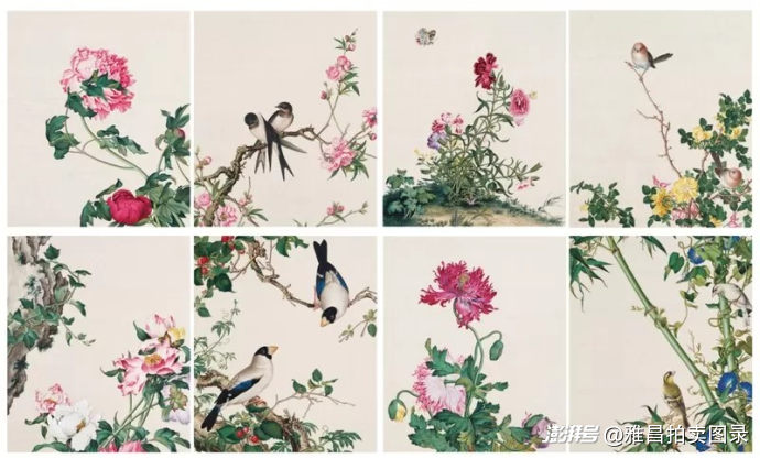 郎世宁《花鸟草虫十六开册》(上图为部份册页,2025年邦瀚斯762.4万港元成交)