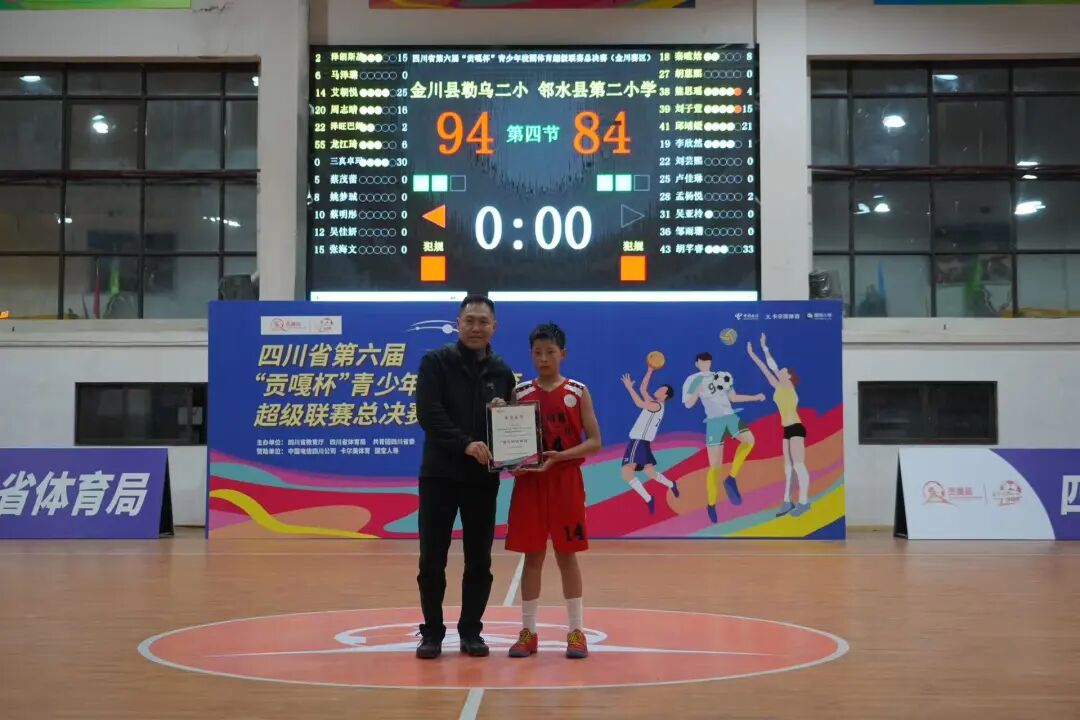 面对强劲对手,勒乌二小和邻水第二小学的姑娘们稳扎稳打,每一次精妙的挡拆配合,都引来主场山呼海啸般的助威。关键的第四节,当勒乌二小打出那波决定性的94:84高潮时,场边的家长、老师和同学们集体起立,掌声与呐喊汇成一片。胜利,属于场上默契如一的团队,更属于场下“我们都是一家人”的每一个人。