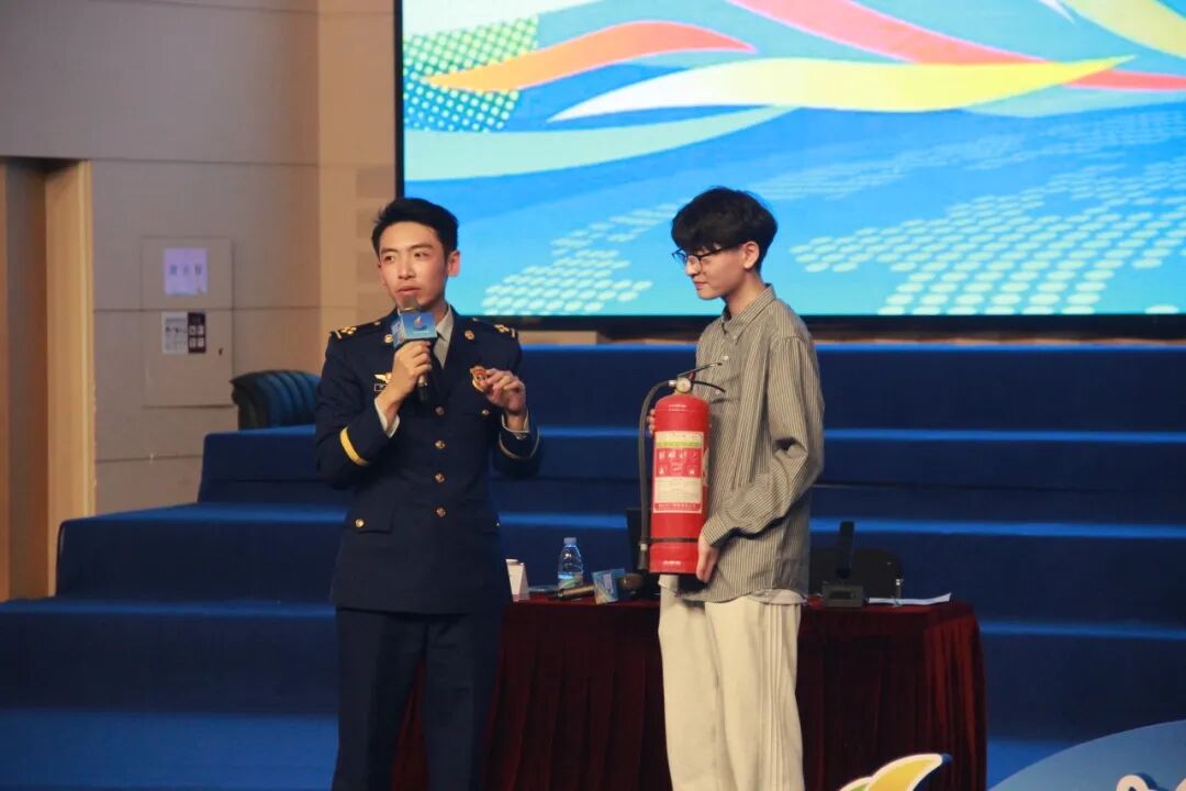 尹浩文与现场志愿者同学进行消防知识互动