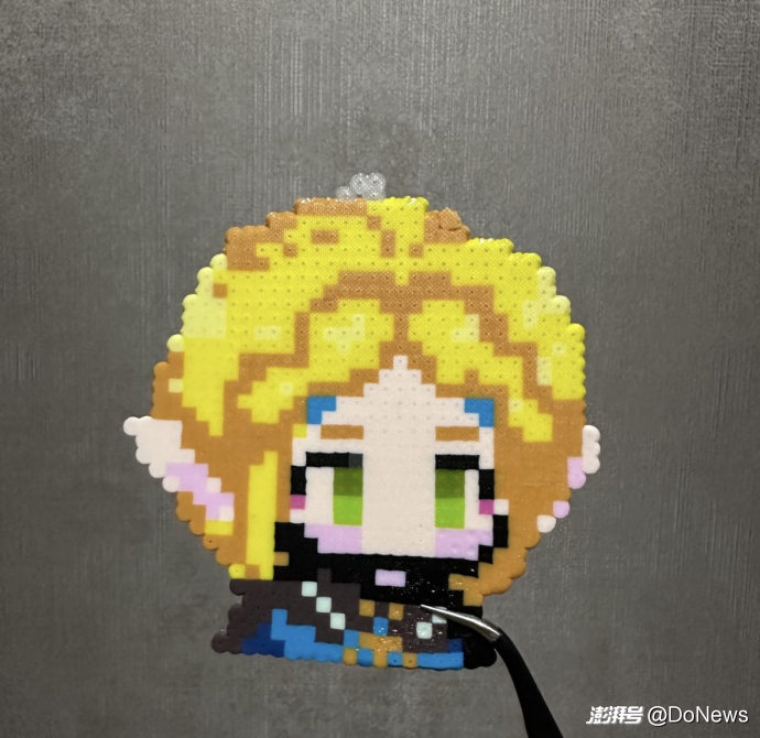接下来的三个小时里,她一边盯着一张像素图纸,一边用镊子将一颗颗直径5毫米的塑料珠码放在钉板上,直到《塞尔达传说》的主角林克逐渐成型,最后用熨斗一烫,珠子熔合在一起,变成了一个可以挂在包上的挂件。