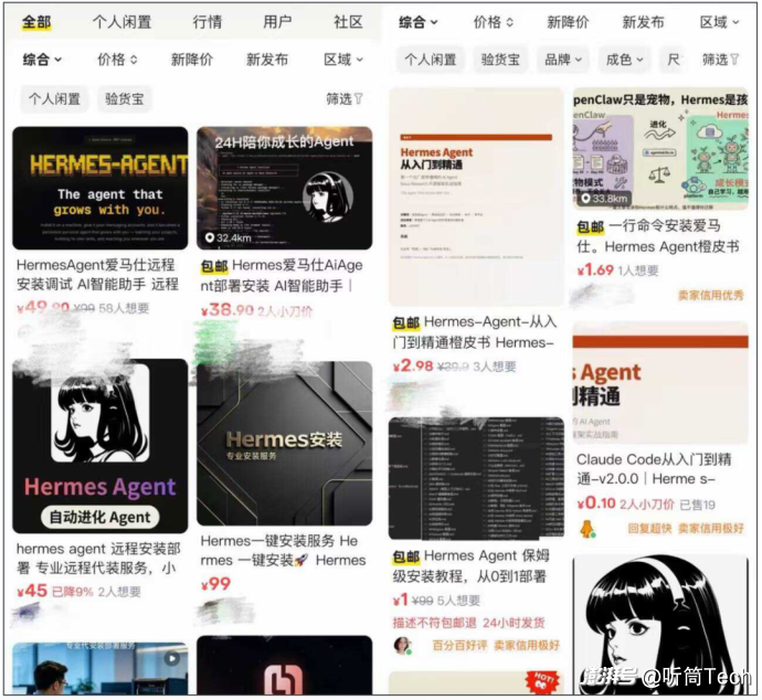 有意思的是,随着“爱马仕”的火热,一条与“龙虾”同样的“收割”路径正在显现。在电商平台,关于“安装爱马仕”“爱马仕技术资料”“爱马仕培训班”的内容,随处可见。