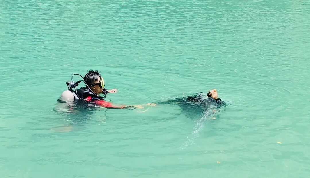 蒙凤黎同志进行水下打捞救援