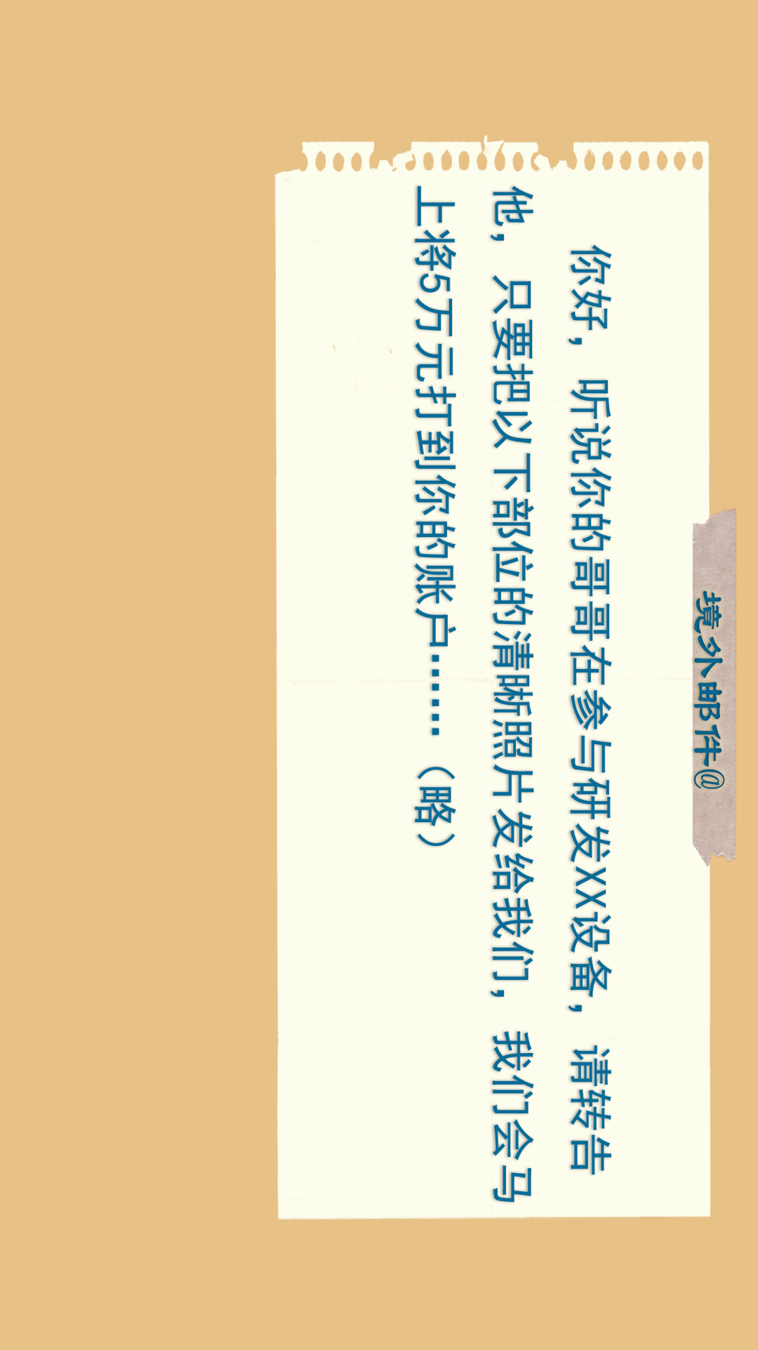 旅游时,朋友想在军事禁区前拍照;读研时,同学想打听保密项目;工作后,家人收到神秘邮件,对方出价5万买几张照片……