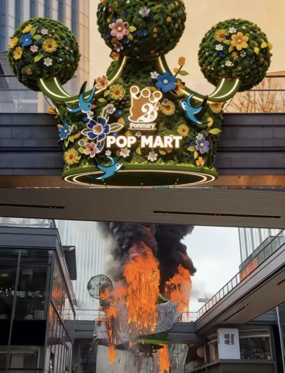 4月15日,有网友发视频称,位于苏州万象天地的泡泡玛特MOLLY皇冠装置失火。视频显示,泡泡玛特MOLLY皇冠起火并有浓烟冒出,随后被烧得只剩一个架子。