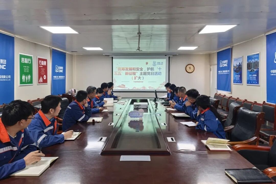 产业园项目部党支部以“统筹发展和安全,护航‘十五五’新征程”为主题,组织项目部全体党员、领导班子成员及各部门负责人集中学习,共同观看国家安全公益宣传片,深入学习全民国家安全教育日主题课件,切实强化安全意识、压实安全责任、凝聚思想共识。