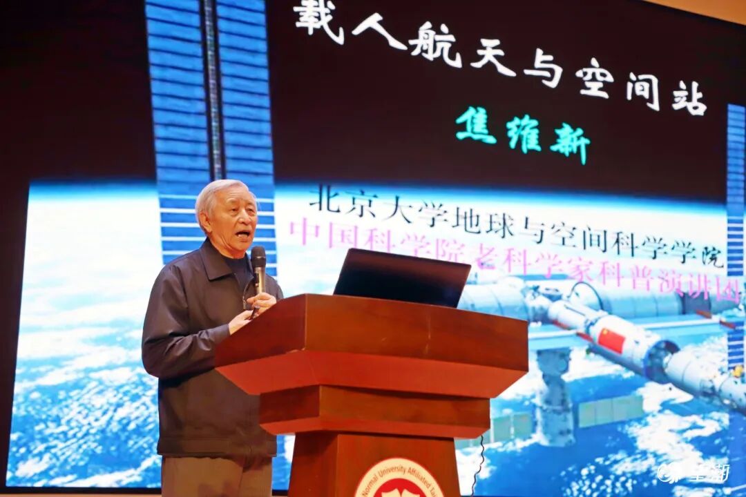 启动仪式结束后,北京大学地球与空间科学学院教授焦维新带来首场精彩讲座。他以《载人航天与中国空间站》为主题,用通俗易懂的语言、鲜活生动的案例,带领同学们仰望星空、探秘宇宙,讲述我国航天事业从追赶到并跑、领跑的奋斗历程,让大家在感受科技震撼的同时,厚植家国情怀、树立航天梦想。