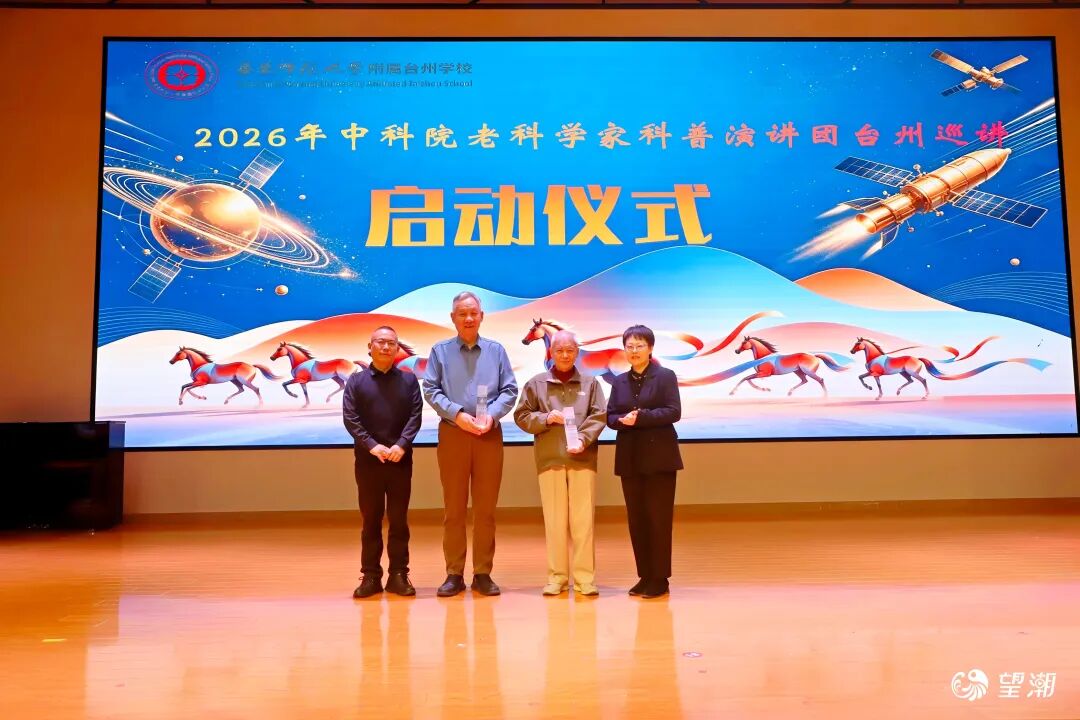 4月13日,2026年中国科学院老科学家科普演讲团台州巡讲启动仪式在华东师范大学附属台州学校举行。本次活动由台州市科协、台州市教育局联合主办,以迎接4月24日第十一个“中国航天日”为契机,大力弘扬科学家精神与航天精神,把最前沿的科学知识、最宝贵的科研精神送进校园,点亮青少年心中的科学火种。台州市科协副主席金哲蒙出席活动。