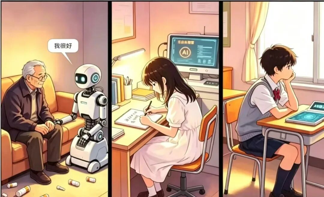晚上八点,一位白发苍苍的老人坐在沙发上,对面的陪伴机器人问她今天过得怎么样。她想了想,说:“挺好的。”机器人立刻接道:“太好啦!要不要我给您讲个笑话?”老人没有说话。她其实想说的是,女儿已经十四天没有打来电话了。