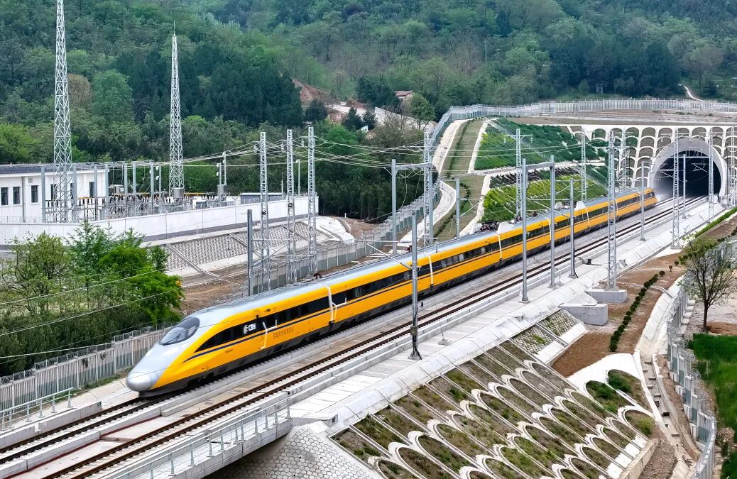 西十高铁陕西段逐级提速试验按时速140公里至385公里共20个等级开展测试,高速综合检测列车逐步提速,直至达到线路设计时速的110%,全面验证线路设备在高速状态下的安全性、稳定性与匹配性。