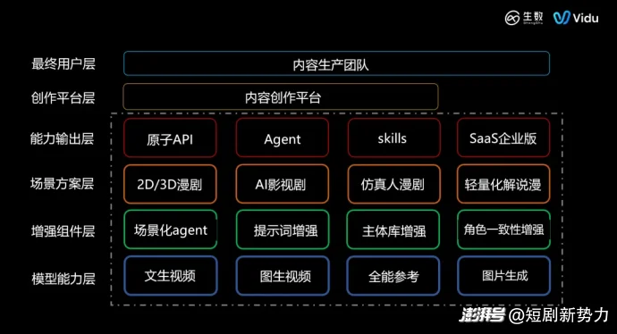 - 场景方案层:基于底层能力与增强组件,针对2D/3D漫剧、AI影视剧、仿真人漫剧、轻量化解说漫剧四大主流内容形态,提供开箱即用的标准化解决方案。