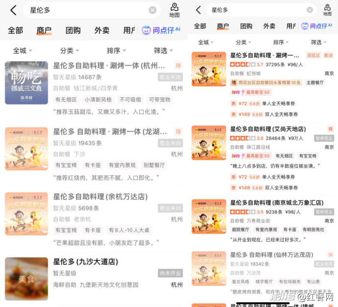 另外,星伦多陷入闭店窘境,在红餐网看来,还与行业的趋势变化有关,尤其是在价格上。红餐大数据显示,截至2025年5月,人均100元以下的自助餐门店占比已达80%,较2022年提升了17.2个百分点,这两年,平价自助已成为赛道主流趋势。另据大众点评数据,星伦多南京等多地的门店人均消费价格,目前仍维持在百元左右。对此,有业内人士认为,“在这样的平价趋势下,星伦多原本的性价比优势不再突出,确实难以在激烈竞争中独善其身。”