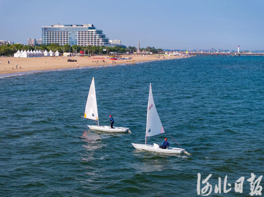 在秦皇岛北戴河新区蔚蓝海岸,人们进行帆船训练。(河北日报资料片)河北日报记者赵杰摄